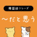 「〜だと思う」はいろいろな表現があります!생각해요は有名な表現ですが、実は日常ではあまり使いません。場合に応じて適切な表現を使い分けれるようになりまし…