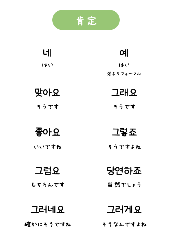 会話で必要な相槌表現をまとめました。タメ口の解説もつけましたが、最初は一覧にある敬語の方から覚えましょう。ちなみに相槌は韓国語で「맞장구」と言います。