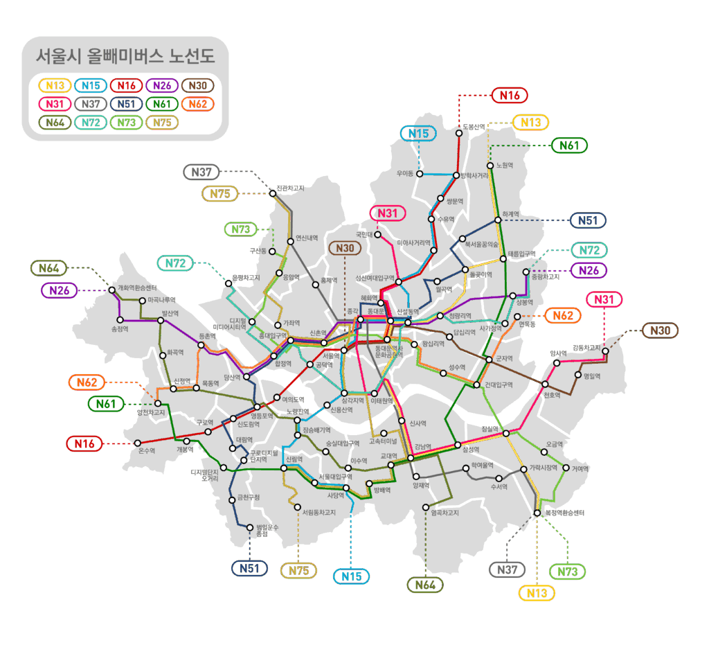 【韓国旅行】終電逃しても大丈夫。ソウル深夜バス「オルペミバス」運行情報・利用方法