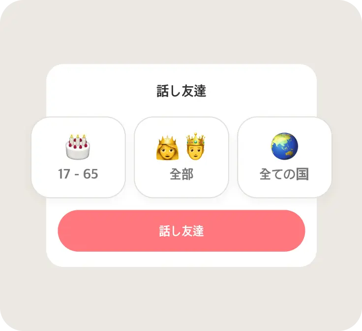 ただ、相手の性別・年齢・居住国を限定したり、理想の話し相手とチャットでも会話したいときにも一定数のバルーンが必要です。実際に使ってみて毎日無料でもらえるバルーンで足りるか試してみてください。
