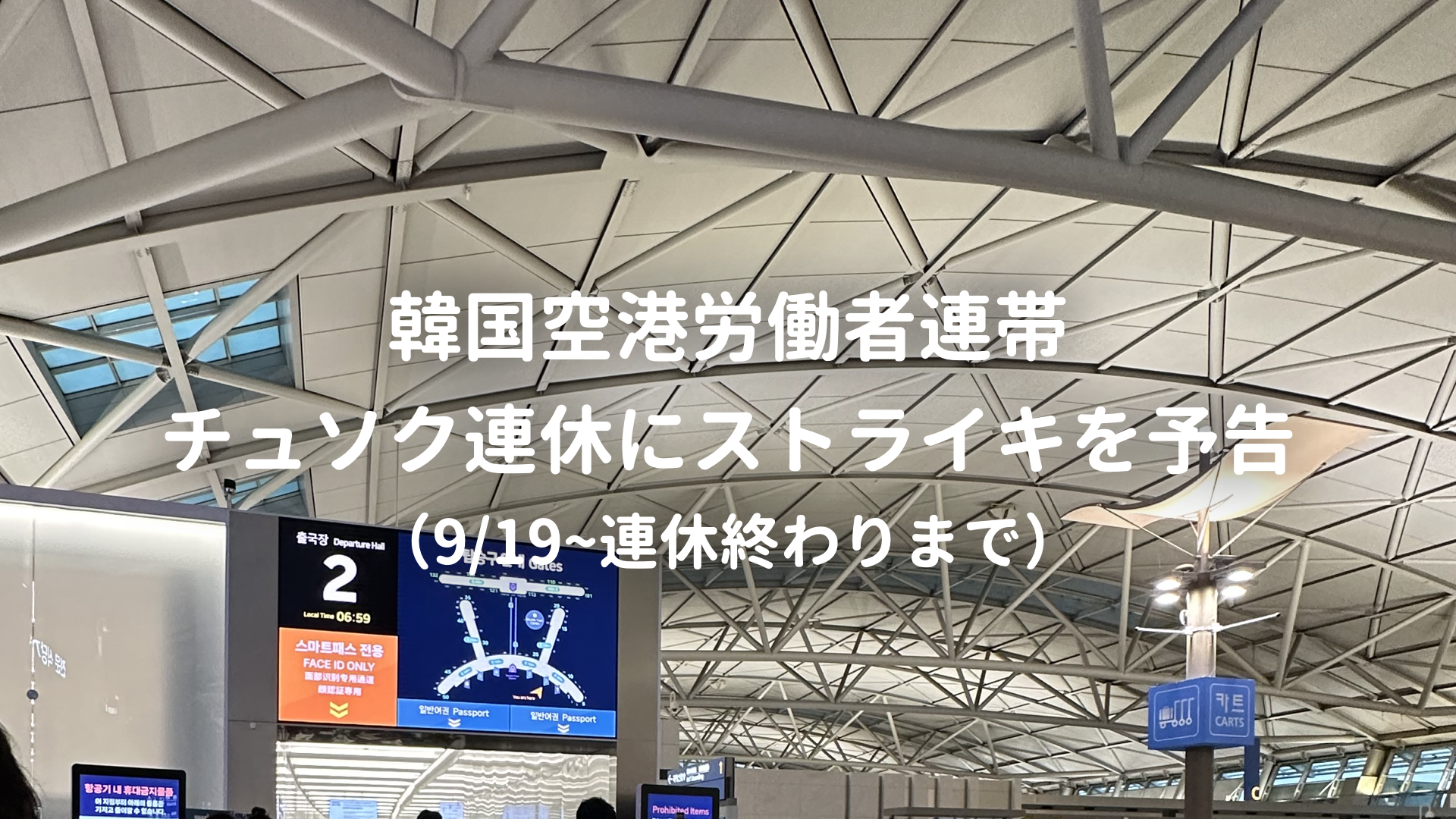 韓国の全国空港労働者連帯が、今月19日からチュソクの連休までストライキ(파업)に入ると予告しました(→現地のニュース)。仁川空港や金浦空港など15の空港が含まれています。
